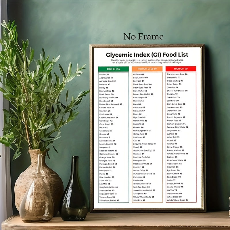Take control of your diet with our 12x18" Unframed Canvas Poster – Glycemic Index Food List Chart, a must-have guide for diabetics, health-conscious individuals, and anyone looking to maintain stable blood sugar levels.