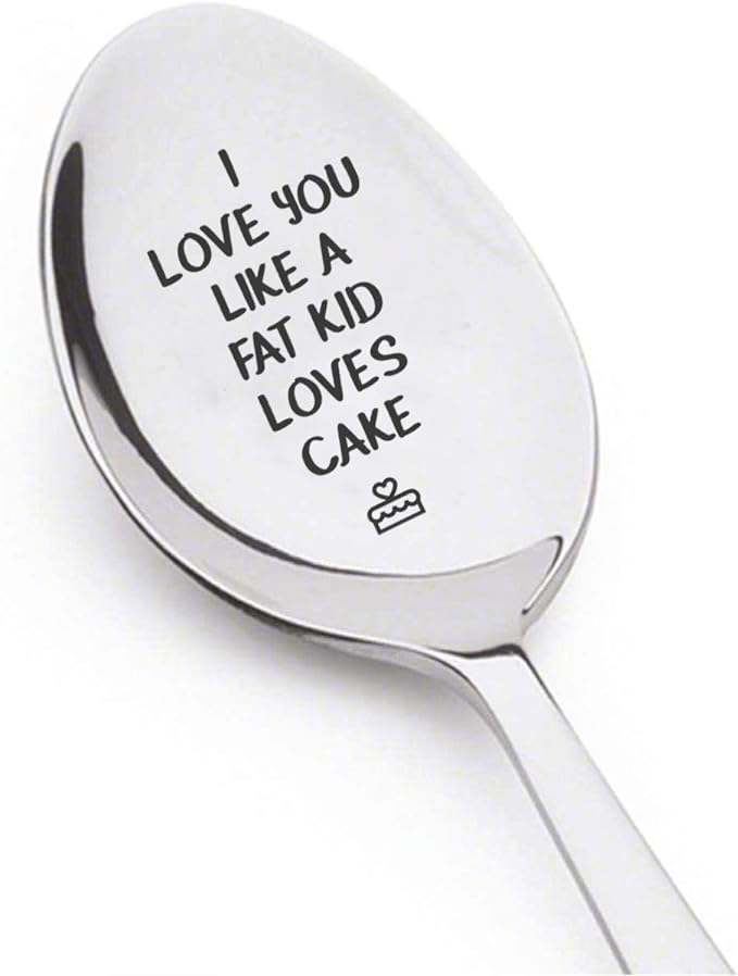 Try our "I Love You Like a Fat Kid Loves Cake" Engraved Spoon risk-free today and add a spoonful of laughter and love to your daily routine!