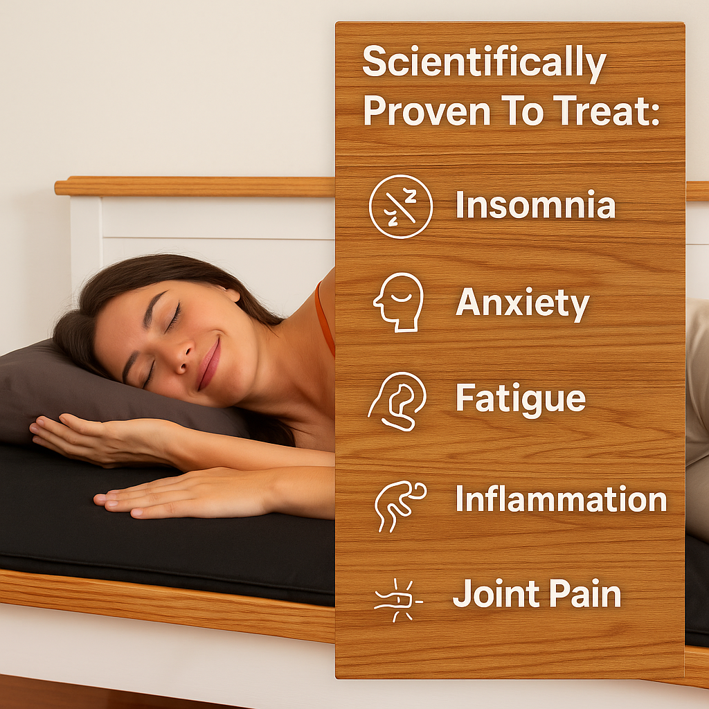 Clinically proven to reduce insomnia, ease anxiety, and fight inflammation — this grounding mattress supports your joints, melts away fatigue, and helps you wake up pain-free, energized, and deeply restored.