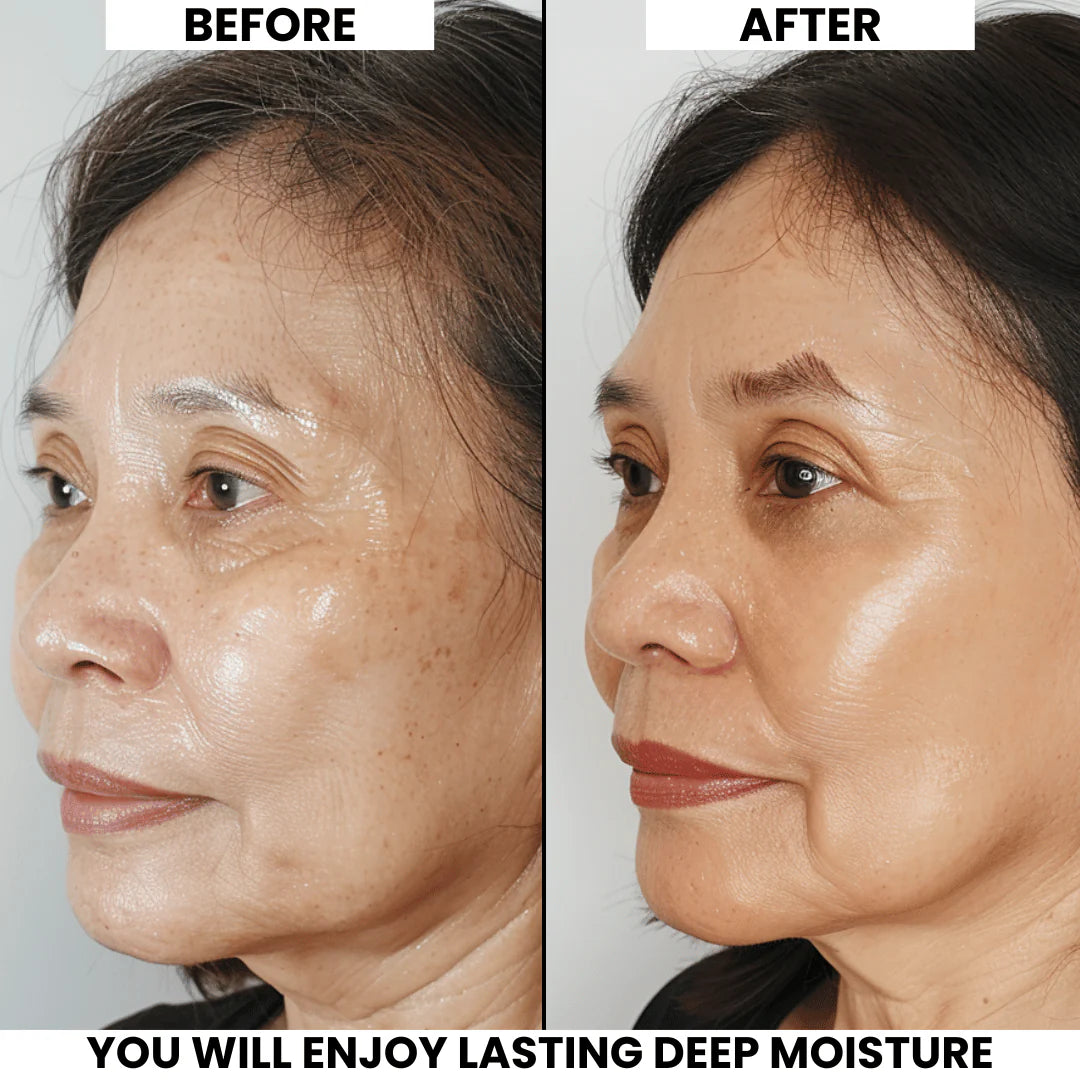 Hyaluronic Acid and Vitamin E deeply hydrate, leaving your skin plump and glowing.