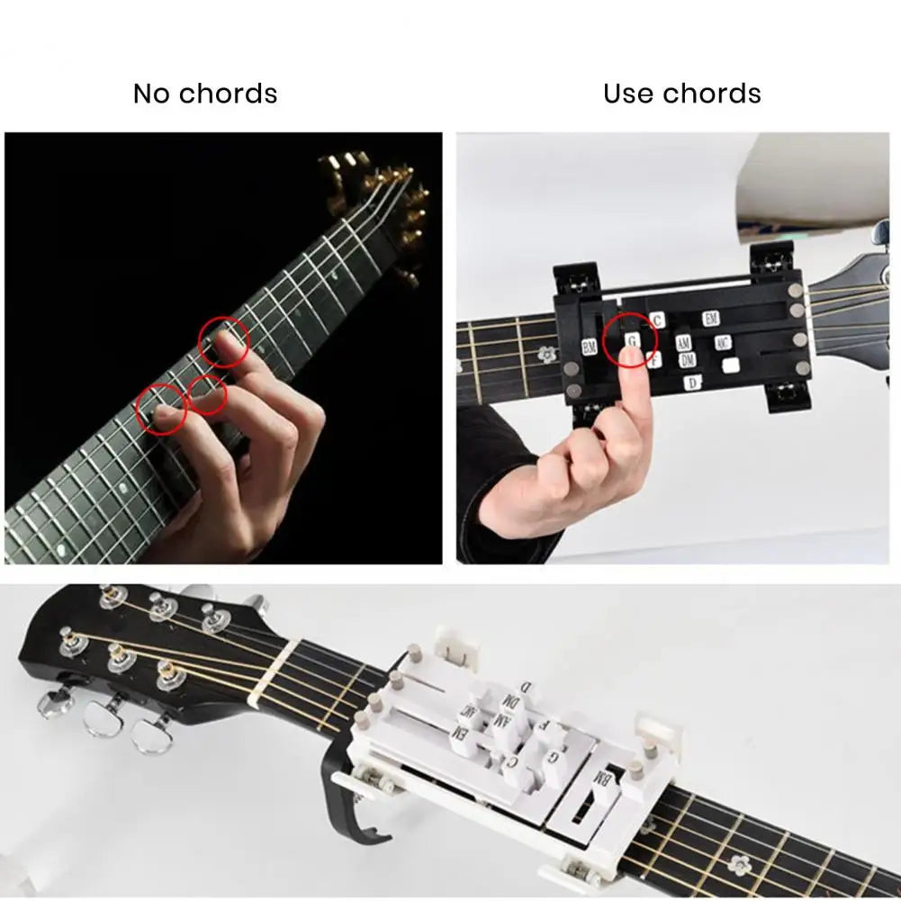 It simplifies chord transitions, trains your fingers to land on the right frets, and makes practice sessions feel like actual progress.