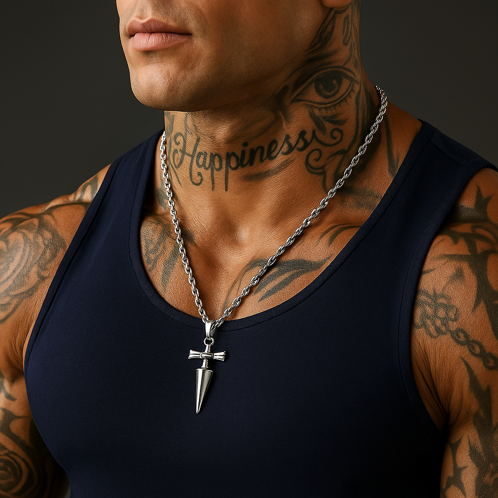 Sculpted from premium-grade stainless steel and finished with mirror-like polish, it balances refined edge with symbolic depth.
