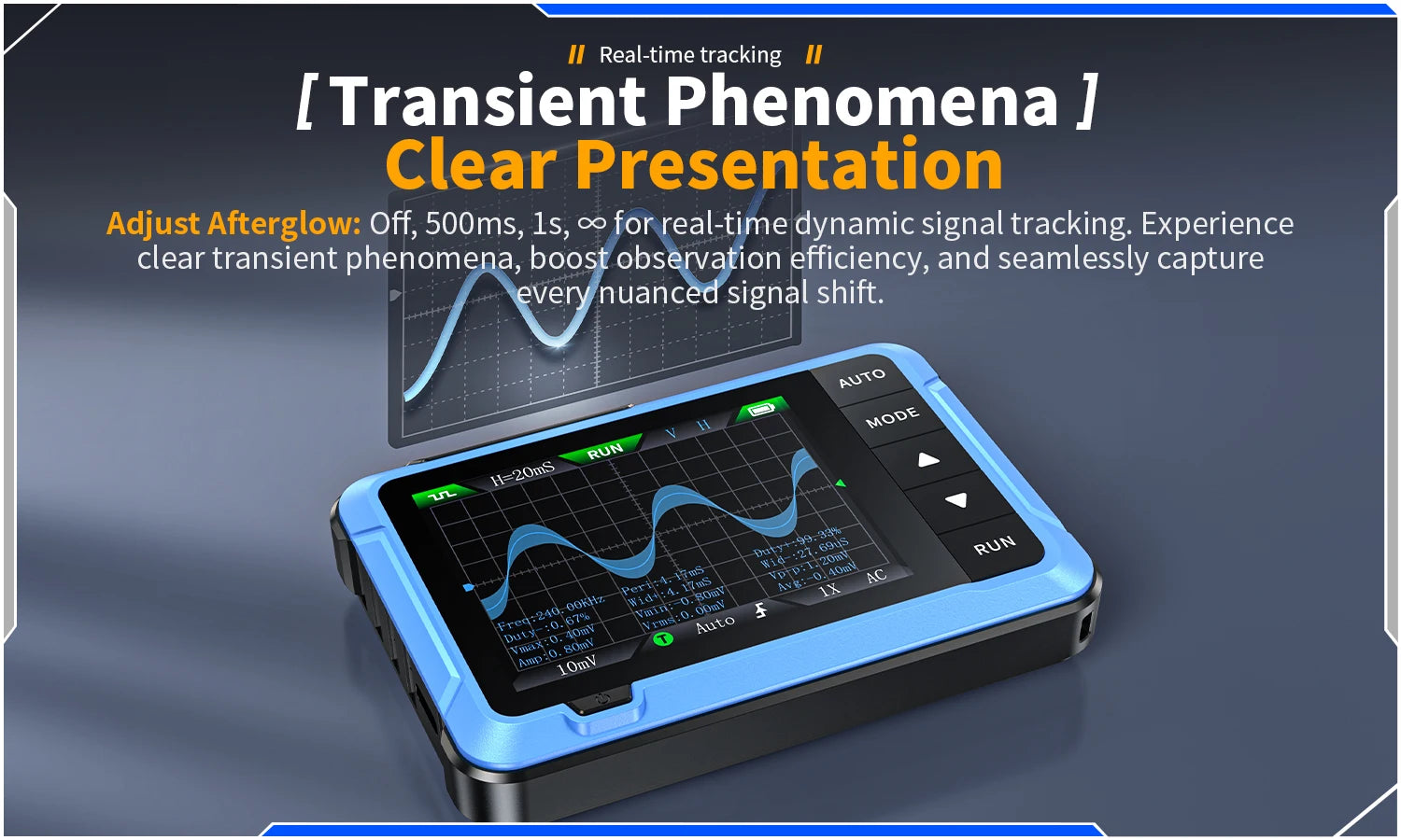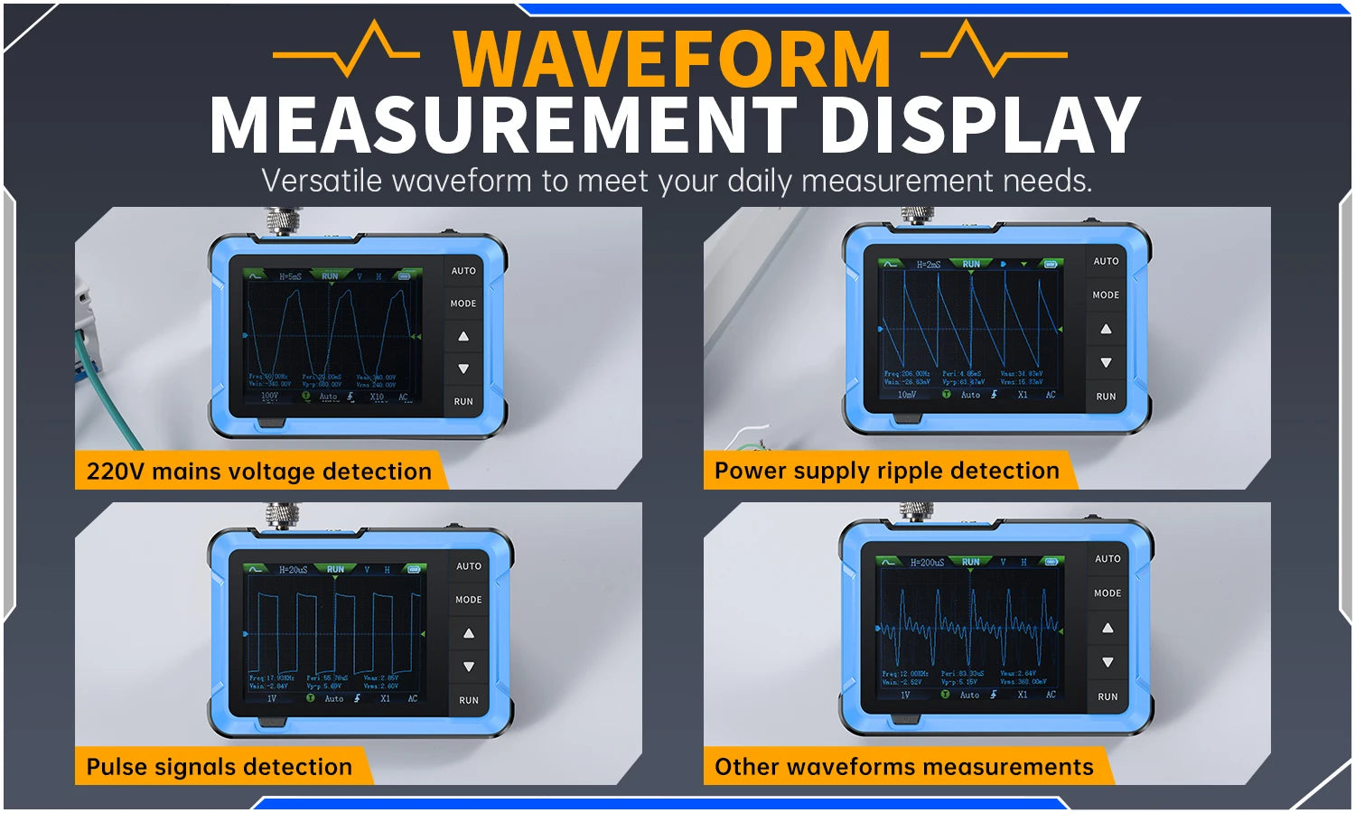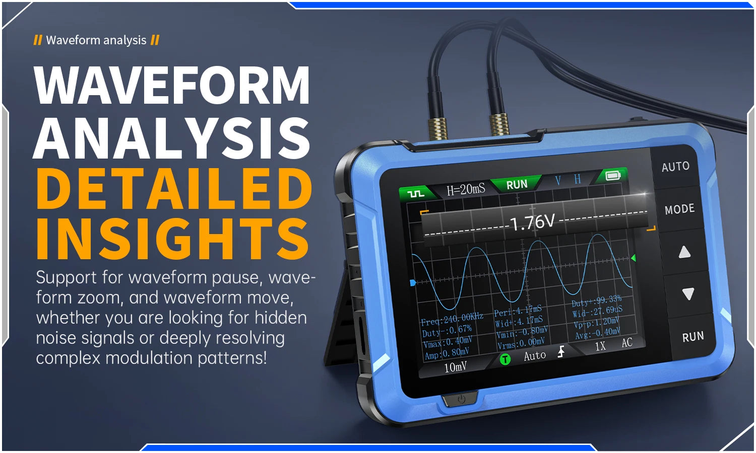 Quickly visualize waveforms without fumbling with settings—perfect for fine-tuning an audio system, analyzing signal output from any circuit, or diagnosing complex electronics on the go.