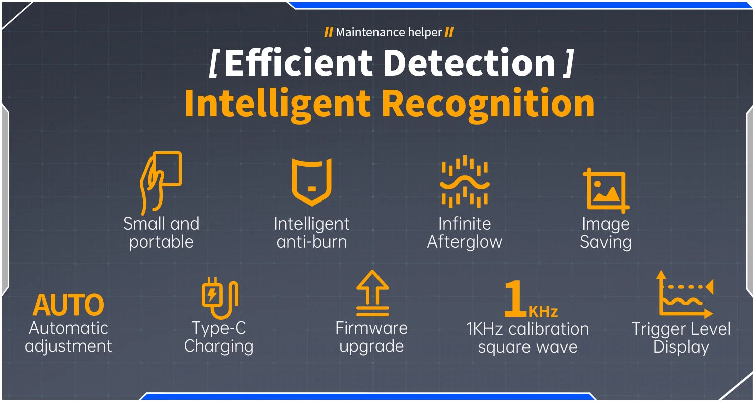 2.8-inch HD LCD screen with 320×240 resolution: Whether you’re fixing your computer or testing an amplifier, the sharp display makes interpreting signals clear, even under tricky conditions like low lighting.